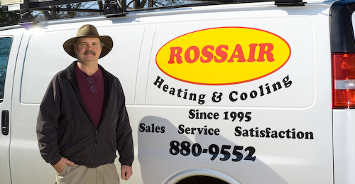 I have purposefully kept my business small so that I might have better control of the quality of my work. When you call Rossair Heating & Cooling Inc. for an estimate, you will get me, the owner, and not a salesman. When you call my company for a repair, you will get me, the owner. Also, since this company was built mainly from customer referrals, I have great incentive to perform an honest, quality repair. This philosophy has been very successful for me, and I hope you will give Rossair Heating & Cooling Inc. the opportunity to serve you next time you may need heating or air conditioning work.